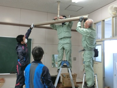 4月4日(木)午前、入学式の式場準備の後、職員作業で「教室の整備」を行いました。普通教室は、すべて大型ディスプレイを設置した関係で、スクリーンはほとんど使わなくなり、撤去をしました。教室の前方がすっきりとしました。