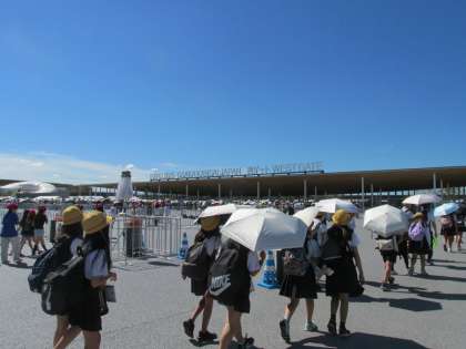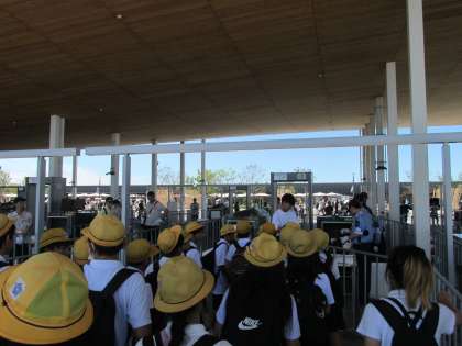 バスは長原から高速道路に入り、とてもスムーズに会場までアクセスすることができました。万博会場が近づくにつれ子どもたちのテンションもあがっていました。