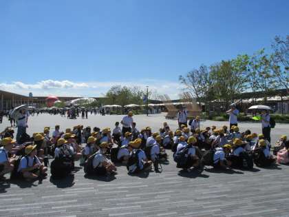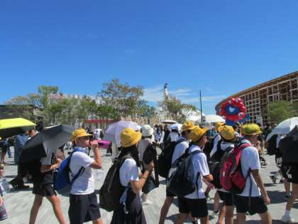 万博会場を移動しています。日本全国から世界のいろいろな国から万博に来られている人でいっぱいです。万博ならではの独特の雰囲気です。さあ、いろいろ見学するぞ!