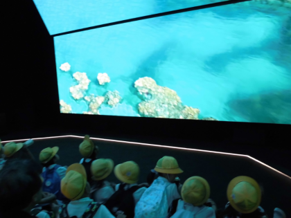 特に、最前列の特等席に案内していただいて見た大画面では、海に潜っていくような感覚を味わうことができ、子どもたちも大興奮でした。