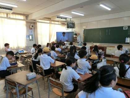 本日、児童朝会がテレビで行われました。