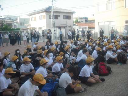 出発式のようすです。みんな元気です。安全に気を付けて行ってきます。