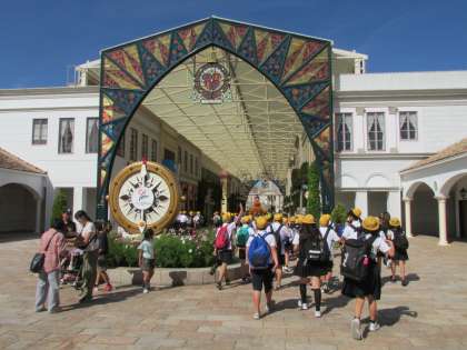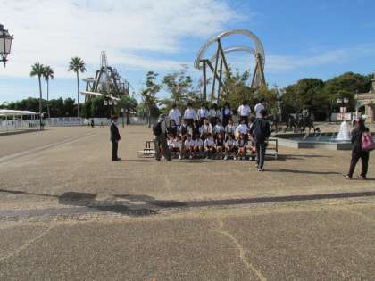 パルケエスパーニャに到着到着しました。エントランス前でクラス写真を撮影したら入場です。噴水広場ではグループ写真を撮り、撮り終えたグループから思い思いの場所に一目散に駆けていきました。現地はとても良い天気で青空が広がっています。活動するには絶好のお天気です。さあ、いっぱい楽しむぞ。
