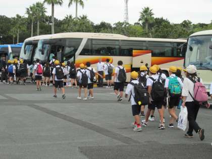 活動を終えパルケエスパーニャを後にしました。バスに乗り込み学校に向かって出発しました(13時25分)。少し疲れたかな。バスの中は静かです。