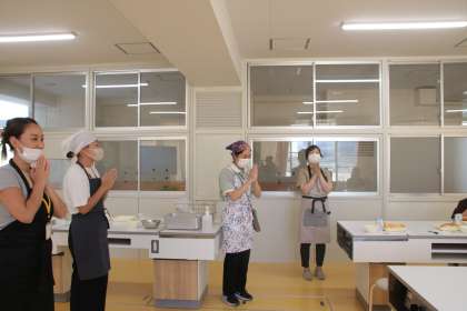 毎日子どもたちのために給食を作って頂いている調理員さんに感謝をしながら、参加者で美味しく頂きました。