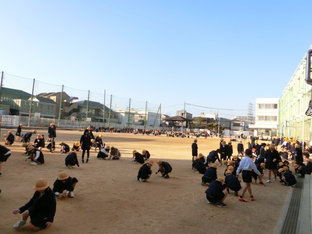そのあとは、全児童で校庭に落ちている石拾いをしました。