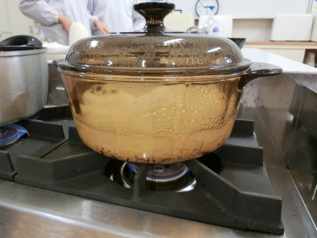 ごはんは透明の鍋で炊き、鍋の中の様子を観察することができました。