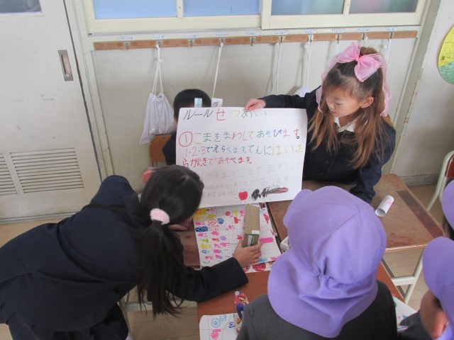 1年生の子どもたちは、ルール説明を丁寧に伝えながら、声を掛けたり遊びを手伝ったりしていました。