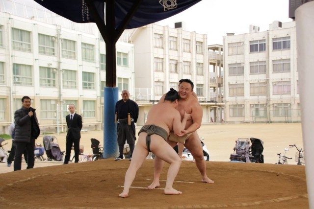 2月28日(土)、片男波部屋の力士の皆様をお迎えし、ふれあい相撲を開催しました。