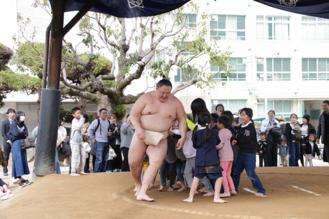 最後には子どもたちへ力強いエールをいただき、大きな身体からあふれる優しさと強さに触れる、貴重な時間となりました。日本の伝統文化を間近で体験できた素晴らしい一日でした。