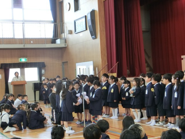 1年生のみなさんは、最初はすこしドキドキした様子でしたが、2~6年生のお兄ちゃんお姉ちゃんをみて、安心した表情が見られました。2年生のみなさんから「あさがおの種」のプレゼントももらいました。1年生のみなさんは、「ありがとうございます!」と大きな声でお礼をいうことができていました。