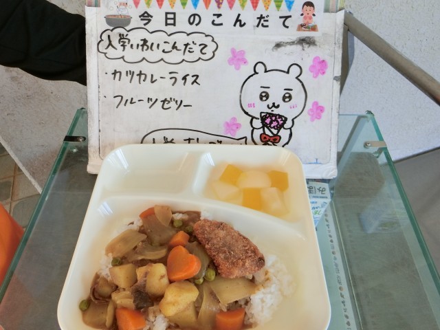カツカレーライスもフルーツゼリーも児童に大人気で、しっかり食べていました。