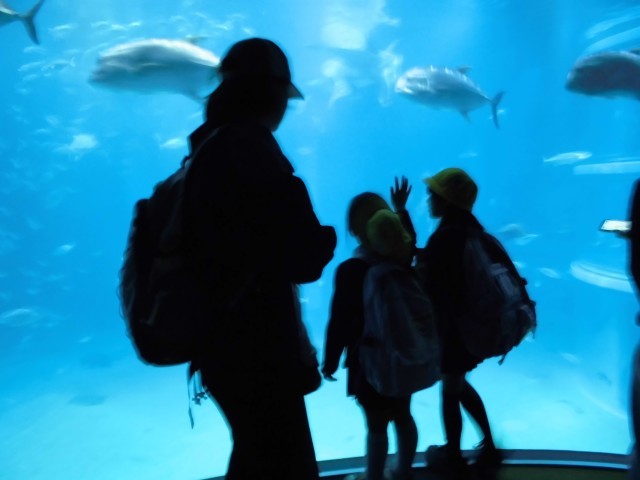 児童たちは、いろいろな魚や生き物をみて、目を輝かせていました。