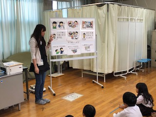 保健室はどんな部屋か、保健室の使い方についてのお話を聞きました。