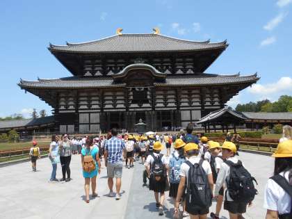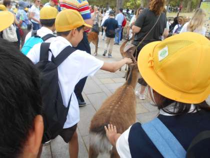 東大寺では、大仏を見て「大き〜い!」「よくこんなのが、作れたなぁ」などと、あちこちから驚きの声がたくさんあがっていました。