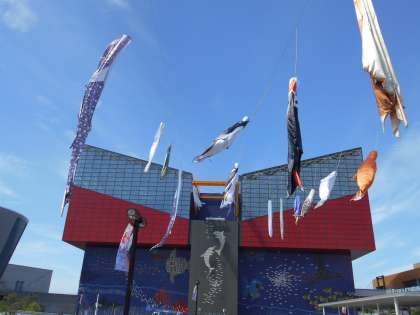 ふれあいコーナーでは、エイやサメの背中を触る体験ができます。みんな、歓声を上げて楽しんでいました。