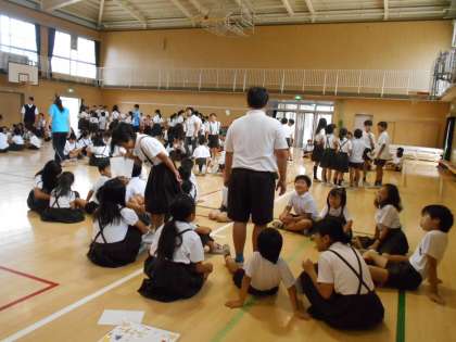 「うさぎ」や「おすしやさん」など、身振り手振りでうまく伝えられるように、工夫してジェスチャーしていました。