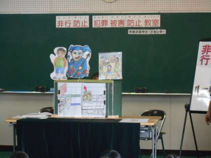 お話の内容は、万引きが犯罪であることや、犯罪被害(声かけ被害)にあわないための防止方策などについてでした。