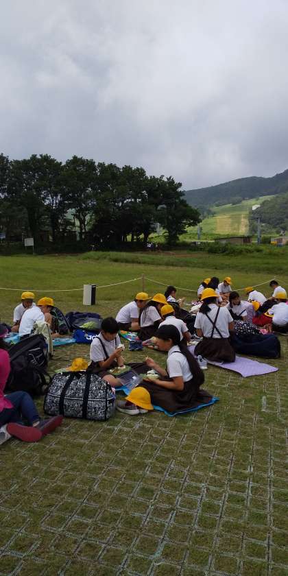 芝生広場で大自然に囲まれて、お弁当タイムです。