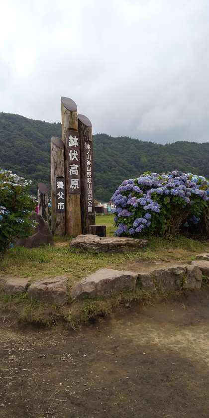 高丸山登山の前に、高原のモニュメントの前で、写真を撮りました。