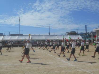 「スマイル」のダンスは、カラフルな手袋が太陽の光に映えました。みんな元気いっぱい、息の合った演技ができました。
