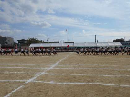 綱引き「力を合わせて」は、全員が力をふりしぼり、なかなか勝負のつかない白熱した競技でした。