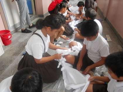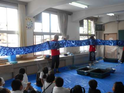 10月2日(水)4年生が「布の染色体験ワークショップ」を行いました。