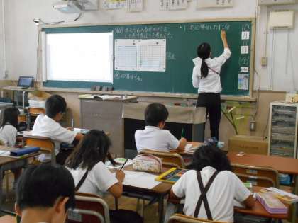 2クラスの子どもたちが3つのグループに分かれて、習熟度別少人数学習を行いました。