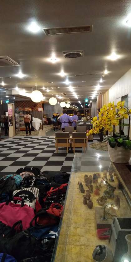 宿舎の方々にお出迎えをいただき、まずは、ロビーで開舎式をしました。