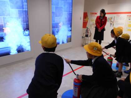 防災センターでは、消火器訓練や地震体験などを通じて、災害が起きた時にどう対応するかについて学びました。