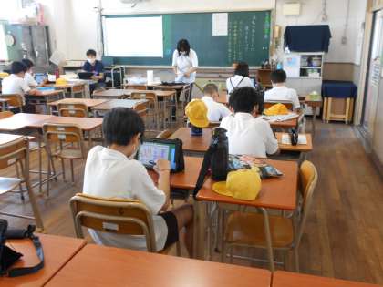 今週から6年生の授業が始まっています。道徳や図工、タブレットを使ったプログラミング学習などをしました。