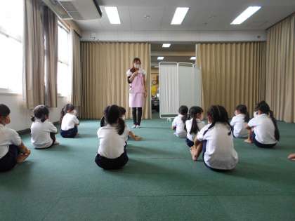 上の写真は1年生です。今日は心臓検診でした。いろいろな検診をしてきましたが、どの検診も静かに待つことができています。