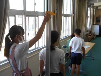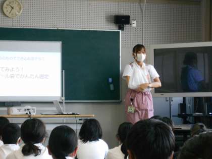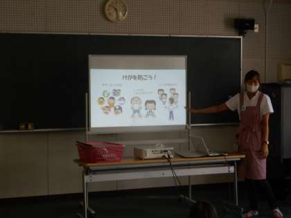 測定前の保健指導は、9月の保健目標である「けがを防ごう」に合わせて、けがの予防について学習しました。