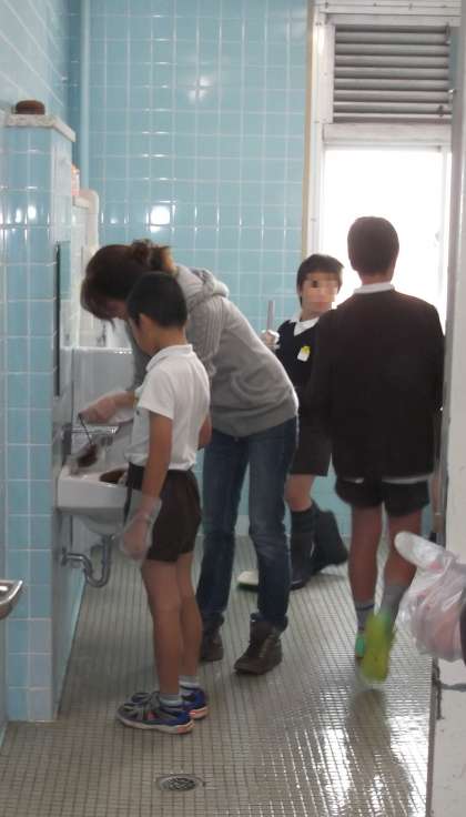 高学年は低学年に掃除の仕方を教えたり、やり方がわからないところは地域の方々に教えてもらったりしながら、みんなで協力してピカピカにすることができました。
