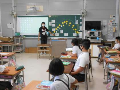 一人一人半月を黒板にはっていき、半月の動きを確認していました。