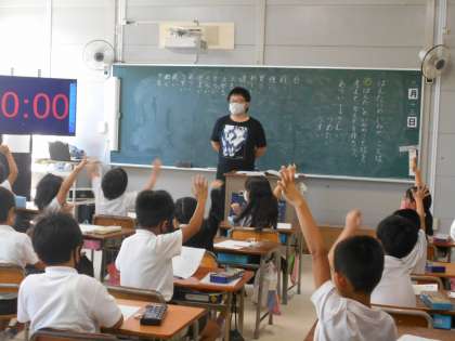 1組は、国語科の学習で反対の意味の言葉を考えてカルタを作りました。