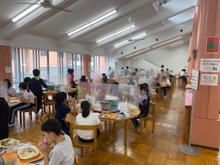 食事係が配膳を担当し、みんなでおいしくいただきました。あまりにもおいしかったからか、おかわりが大繁盛でした。