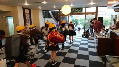一晩お世話になった宿を後にして、今日も元気に修学旅行を笑顔で楽しみます。