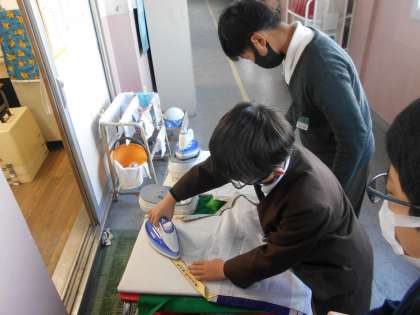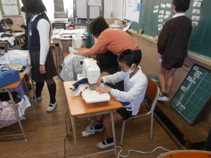 アイロンをかけて折り目をつけたり、ミシンのスピードに注意をしながら、しつけた布を返し縫いして丁寧に縫ったりしていました。完成が楽しみですね!