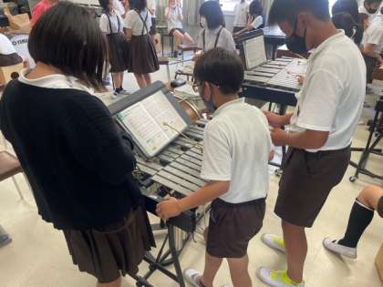 授業の最後にゆっくりしたテンポで全員で合わせてみると