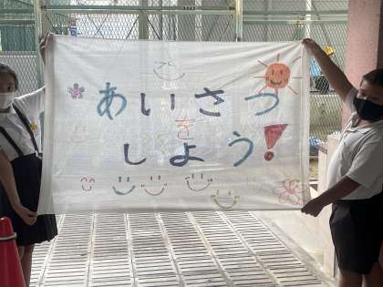 あいさつ運動をしています。
