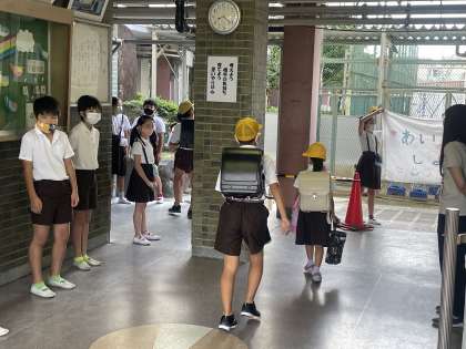 代表委員会の児童が登校時間に合わせて