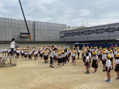 緊急事態宣言も明けたので全校朝会で運動場に集まりました。