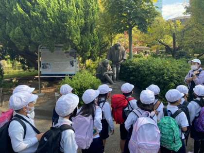 夏に学習した平和学習の振り返りをしています。