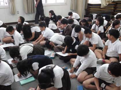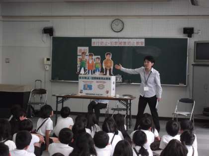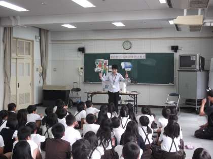 大阪府中央少年サポートセンターより来校された2名の先生から、万引きなどの非行に走らないための心構えや、犯罪にまきこまれないためにはどうするべきかなどについて、わかりやすい説明を受けました。