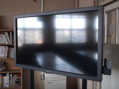 さらに、図書館には電子黒板(大型ディスプレイ)が設置されており、電子図書の読み聞かせができます。音声CD付き英語絵本やDVDがあれば、ネイティブスピーカーによる本物の英語を聴きながらお話を楽しめます。