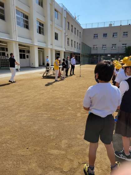今日の月曜朝会は「見守り隊の方とのあいさつ」をしました。