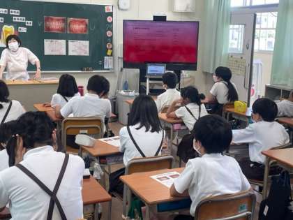 学校歯科医の先生と歯科技工士の先生に来ていただき「歯と口の健康教室」を行いました。