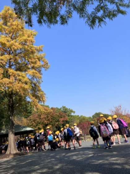 植物園などをたてわり班で回っています。