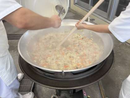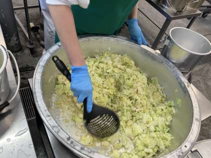 今日のチャレンジ食材はエリンギとキャベツです。苦手な食べ物もみんなチャレンジして食べていました。